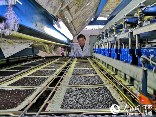 張立祥查看紫菜加工情況。連云區(qū)委宣傳部供圖
