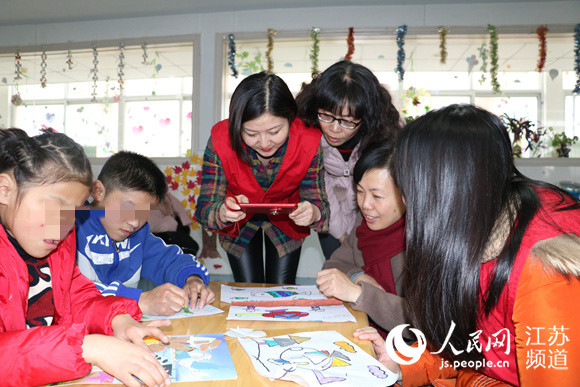 志愿服務(wù)者們陪孩子共同完成手工制作
