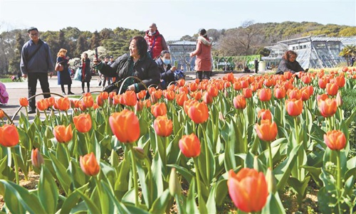 近日,市民在梅園景區(qū)欣賞郁金香。春意漸濃,郁金香悄然綻放,為錫城增添了一抹靚麗的色彩。(劉芳輝 攝)