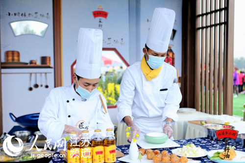 廚師用金龍魚外婆鄉(xiāng)小榨菜籽油現(xiàn)場烹飪美食。益海嘉里供圖