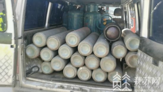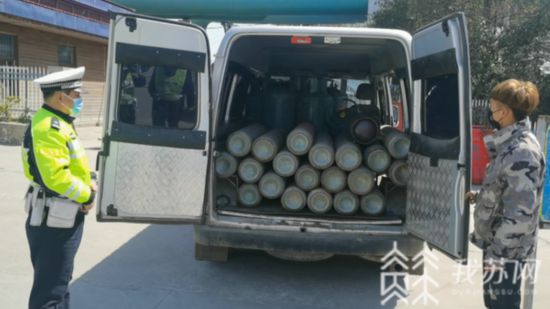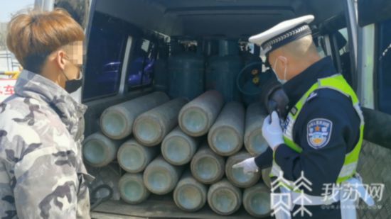 3月22日中午,徐州交警支隊(duì)開發(fā)區(qū)大隊(duì)東環(huán)卡口中隊(duì)民警在執(zhí)勤時(shí),發(fā)現(xiàn)一輛中型客車行駛緩慢有載貨嫌疑,民警遂將其攔停對(duì)其進(jìn)行檢查,當(dāng)駕駛員打開車門的瞬間,讓民警驚出一身冷汗,原來這輛車上拉載滿滿一車丙烷氣罐和氧氣罐,可以說這就是一個(gè)移動(dòng)的“定時(shí)炸彈”。
