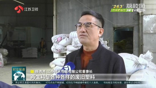 江蘇誠(chéng)天包裝有限公司董事長(zhǎng)陳青秀說(shuō):“再生料是各種各樣的廢舊塑料,加工重新利用的。這個(gè)行業(yè)如果是用再生材料,它就是會(huì)有氣味!