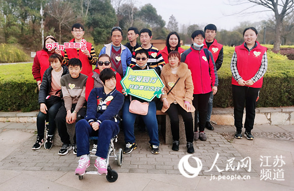 腦癱導(dǎo)致肢體一級殘疾,陳霞無法行走,此次“漫步”靠的是一輛小推車,由5名志愿者和她在南通市崇川區(qū)幸福街道“殘疾人之家”的好伙伴輪番推扶。
