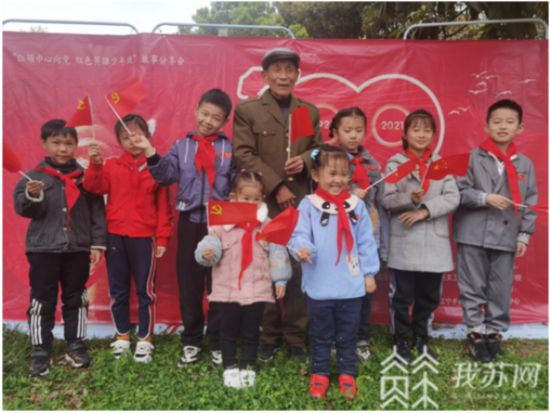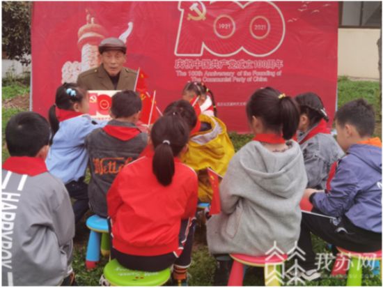 在黨史學(xué)習(xí)教育中,南京江寧用好用活本土紅色資源,將其作為黨史學(xué)習(xí)教育最生動的教材,引導(dǎo)人民群眾,特別是青少年強化黨史記憶。3月28日,一場“知黨史 感黨恩,聽老兵講黨史”黨史學(xué)習(xí)教育在南京江寧湯山街道高莊社區(qū)舉辦。77歲高齡的退役老兵、老黨員鄒年榮來到現(xiàn)場,給孩子們講述紅色年代的英雄故事。