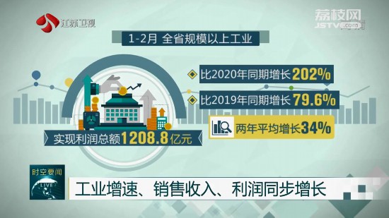 1-2月全省規(guī)模以上工業(yè)實(shí)現(xiàn)增加值同比增長(zhǎng)48.2%;銷售收入同比增長(zhǎng)56.7%;實(shí)現(xiàn)利潤(rùn)總額1208.8億元,比2020年同期增長(zhǎng)202%,較2019年同期增長(zhǎng)79.6%,兩年平均增長(zhǎng)34%。步入工業(yè)增速、銷售、利潤(rùn)同步增長(zhǎng)的高質(zhì)量發(fā)展軌道。