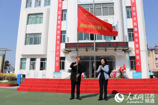 人民網(wǎng)南京4月7日電 (馬曉波)今年是中國共產(chǎn)黨建黨100周年,為加強青少年黨史學(xué)習(xí)教育,4月6日,淮安市淮安區(qū)舉行“追尋新旅足跡 為中華之崛起而讀書”青少年黨史學(xué)習(xí)教育“十百千萬”行動啟動儀式。