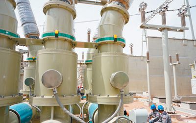 2019年5月8日,工人在張北可再生能源柔性直流電網(wǎng)康保換流站施工。新華社記者 楊世堯攝