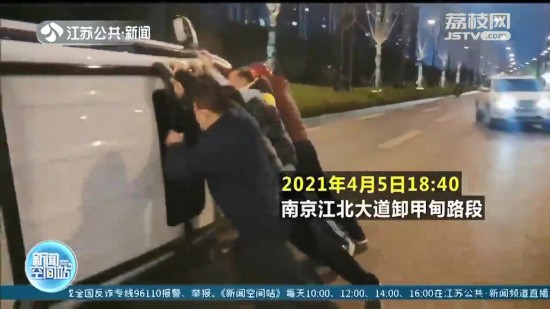 4月5日18:40,南京江北大道卸甲甸路段,一輛宿遷牌照的私家車爆胎后發(fā)生側(cè)翻,車主被卡車內(nèi)。路過事故現(xiàn)場(chǎng)的502路公交車緊急停車,駕駛員黃久超和乘務(wù)員孫玉琴一邊報(bào)警,一邊下車救人。