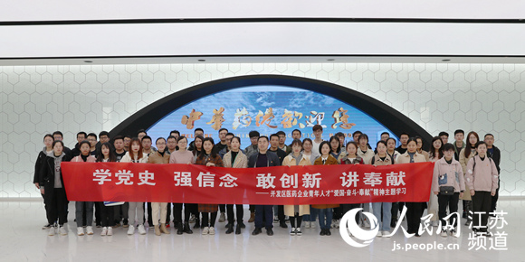 參加“學(xué)黨史”主題活動的青年人才在中華藥港合影
