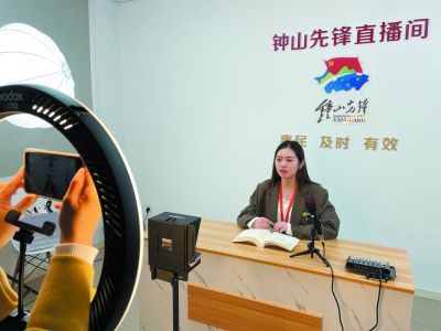 張彬在鐘山先鋒直播間里錄制線上黨課。 南報(bào)融媒體記者 鄧露潔攝