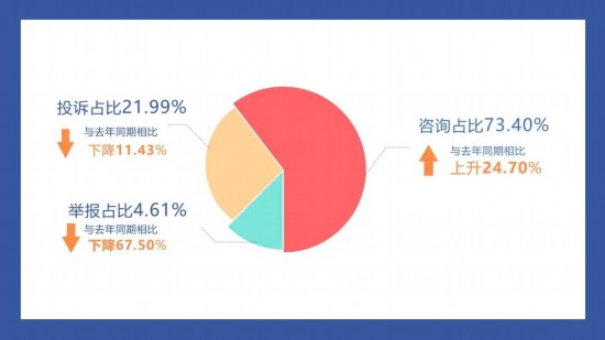今年一季度,全省12315熱線平臺(tái)共受理群眾訴求28.2萬(wàn)件,訴求總量與去年同期相比增長(zhǎng)2.17%。其中,投訴6.2萬(wàn)件,同比下降11.43%,為消費(fèi)者挽回經(jīng)濟(jì)損失4470.38萬(wàn)元;舉報(bào)1.3萬(wàn)件,同比下降67.50%;咨詢(xún)20.7萬(wàn)件,同比增長(zhǎng)24.70%。