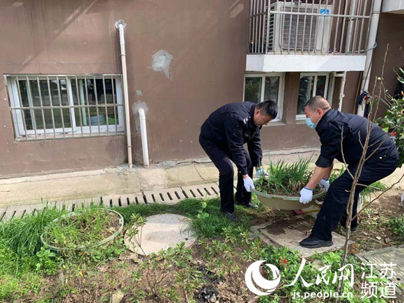 圖為工作人員在整理小區(qū)公共區(qū)域內(nèi)物品。蘆萱攝