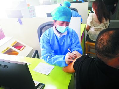 在接種現(xiàn)場,醫(yī)護人員對每一位接種者都很有耐心!按虻枚嗔,知道接種者的心情,也非常理解他們!倍喔嬖V記者,目前,多數(shù)接種者是首次接種,雖然每次幾乎都在重復(fù)同樣的話,但對于接種者來說,這些話能讓他們安心。