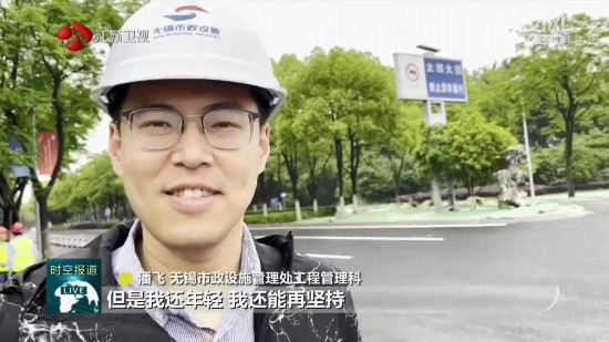 為了應(yīng)對(duì)5月3日夜里預(yù)報(bào)到來的惡劣天氣,33歲的無錫市政設(shè)施管理處工作人員潘飛在工地上堅(jiān)守了整整一夜。