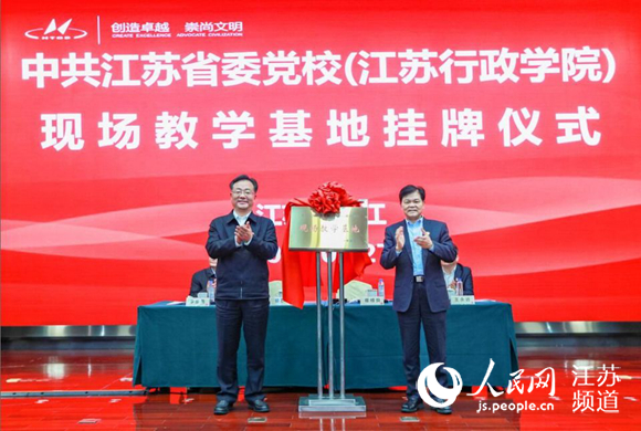 圖為中共江蘇省委黨校(行政學院)亨通集團現(xiàn)場教學基地揭牌現(xiàn)場。亨軒攝
