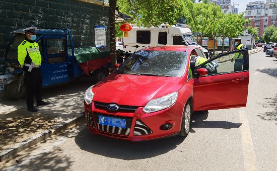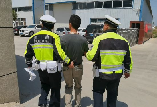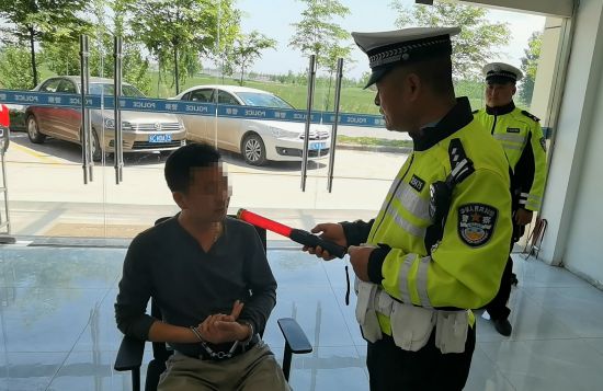 今天(5月5日)10時許,徐州沛縣交警大隊民警通過緝查布控系統(tǒng)發(fā)現(xiàn),有一輛湖北牌照的紅色轎車駕駛?cè)松嫦酉稻W(wǎng)上逃犯,民警立即將其截停對其例行檢查。