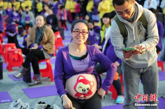 資料圖:準媽媽做瑜伽。中新社發(fā) 陳文 攝
