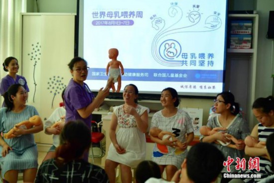 資料圖:醫(yī)護人員正為準媽媽們講解多種哺乳姿勢。中新社記者 翟羽佳 攝