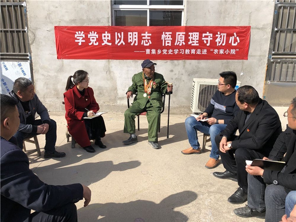 “給我印象最深的是濟(jì)南戰(zhàn)役,那場(chǎng)戰(zhàn)斗極其慘烈,持續(xù)了三天三夜。我們排大部分的戰(zhàn)友都犧牲了,我的大腿也被子彈打中,至今還留有傷疤!痹诓芗l(xiāng)伍員里村老黨員張成貴的小院里,一堂接地氣的黨史學(xué)習(xí)教育課不僅讓30多名本村黨員聽得津津有味,還吸引了不少群眾前來旁聽。今年90歲的張成貴,已歷經(jīng)大大小小的戰(zhàn)斗數(shù)十次。