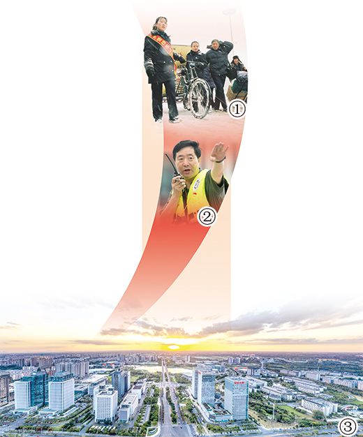 圖①:連云港“雷鋒車”組的車手在雪中為旅客服務(wù)。