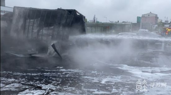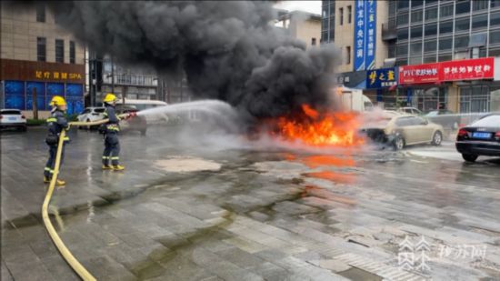 消防員抵達(dá)現(xiàn)場(chǎng)后,發(fā)現(xiàn)現(xiàn)場(chǎng)為一輛廂式貨車(chē)發(fā)生火災(zāi),火勢(shì)猛烈且伴有大量濃煙,由于油箱泄漏產(chǎn)生大量流淌火,火勢(shì)已蔓延至周?chē)妮v轎車(chē)。消防員迅速使用泡沫對(duì)地面流淌火進(jìn)行堵截。同時(shí),消防隊(duì)員分成兩組:一組人員從正面對(duì)火勢(shì)進(jìn)行撲救;一組人員從背面阻止火勢(shì)蔓延。經(jīng)過(guò)半個(gè)小時(shí)的撲救,現(xiàn)場(chǎng)火勢(shì)已基本控制,經(jīng)確認(rèn)無(wú)復(fù)燃可能性后消防員返回。經(jīng)現(xiàn)場(chǎng)了解,附近的店員首先發(fā)現(xiàn)車(chē)輛起火,隨即撥打119報(bào)警。此次火災(zāi)共造成五輛車(chē)輛被燒毀,具體起火原因不明。目前,火災(zāi)具體原因和損失正在進(jìn)一步調(diào)查。