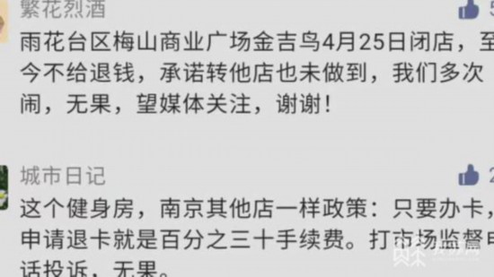 記者聯(lián)系金吉鳥南京公司相關(guān)工作人員,公司方面并未否認(rèn)上述事實(shí)的存在,并表示,近年來金吉鳥陸續(xù)在南京開了數(shù)十家健身門店,又有數(shù)千名員工的工資需要解決,資金方面存在不小困難,公司正在多方籌措資金,設(shè)法解決會(huì)員退費(fèi)、員工工資等問題。