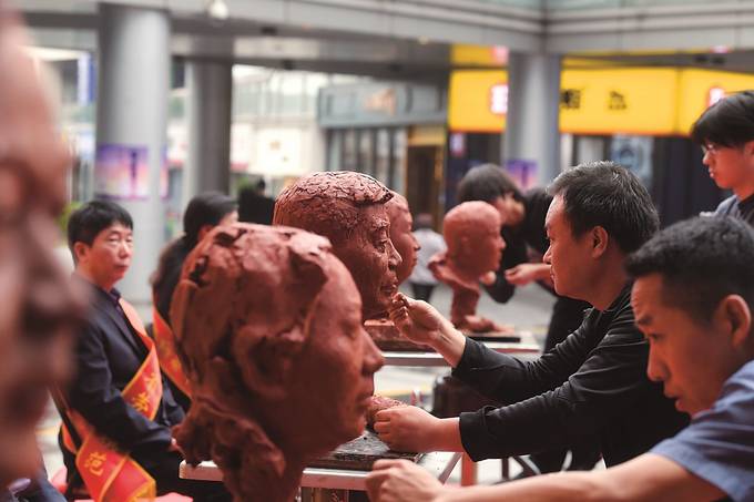 13日,南京市棲霞區(qū)總工會(huì)、棲霞區(qū)文聯(lián)聯(lián)合江蘇省青年美術(shù)家協(xié)會(huì)雕塑藝委會(huì)等單位共同舉辦“致敬最美勞動(dòng)者”藝術(shù)創(chuàng)作活動(dòng)。圖為藝術(shù)家們?cè)跒闂紖^(qū)的全國、省、市勞模塑像。 通訊員 張媛媛 本報(bào)記者 邵丹 攝