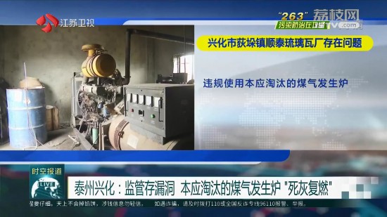 用于鋼鐵、建材等行業(yè)的煤氣發(fā)生爐存在熱效率低下、對環(huán)境空氣質(zhì)量影響突出等問題,江蘇明確要求2020年底前,全面淘汰爐膛直徑3米以下的燃料類煤氣發(fā)生爐。近日,省攻堅指揮部辦公室接到群眾舉報,泰州興化市部分玻璃瓦制造企業(yè)生產(chǎn)過程中違規(guī)啟用本應(yīng)淘汰的煤氣發(fā)生爐。對此,暗訪組第一時間進(jìn)行了走訪。