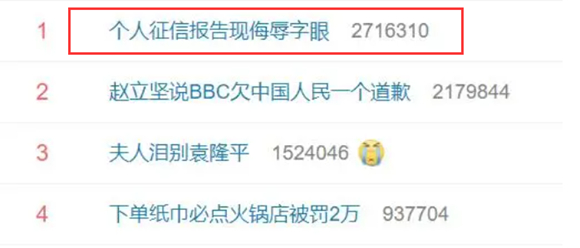 “個(gè)人征信報(bào)告現(xiàn)侮辱字眼”登上熱搜榜
