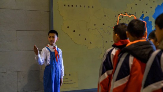新安旅行團(tuán)歷史紀(jì)念館館長(zhǎng)顧學(xué)讓介紹,新安小學(xué)同學(xué)們的開(kāi)學(xué)第一課和畢業(yè)班最后一課,都是同學(xué)們自己擔(dān)任講解員,帶領(lǐng)大家學(xué)習(xí)重溫新旅精神。