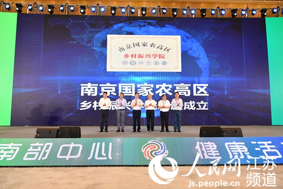 南京農(nóng)業(yè)大學(xué)副校長閆祥林;南京林業(yè)大學(xué)副校長李維林;農(nóng)業(yè)農(nóng)村部南京農(nóng)業(yè)機械化研究所所長陳巧敏;江蘇省農(nóng)業(yè)科學(xué)院副院長黃俊 ;江蘇省中國科學(xué)院植物研究所副所長馮煦,溧水區(qū)委副書記、南京國家農(nóng)高區(qū)黨工委委員汪冬寧共同上臺,舉行南京國家農(nóng)高區(qū)鄉(xiāng)村振興學(xué)院成立儀式。
