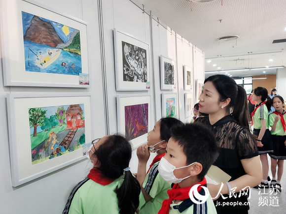 南通部分學(xué)校師生參觀畫展。人民網(wǎng)記者 王繼亮攝