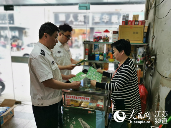 稽查隊員進入零售戶店內開展普法宣傳 王新飛攝