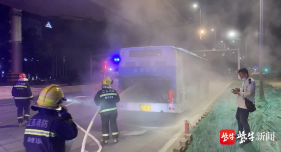 6月4日晚上10點(diǎn)12分許,南京市公安局特警支隊(duì)武裝巡邏二大隊(duì)民警巡邏至鄭和中路與正豐街路口時(shí),發(fā)現(xiàn)由北向南方向的一輛31路公交車正冒出濃濃黑煙,從發(fā)動(dòng)機(jī)艙中能聞到一股濃烈的焦糊味。