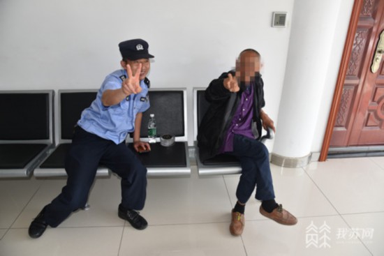 當時老人身上衣服很臟,也有些異味,民警給老人安排洗澡,找來了換洗衣物。老人的頭發(fā)長了,民警找人來給老人剪短了頭發(fā)。換了一身干凈衣服的老人,雖然意識有些不清楚,但是很愿意和民警聊天,甚至還和民警一起比“V”拍起了照,臉上露出了笑容。