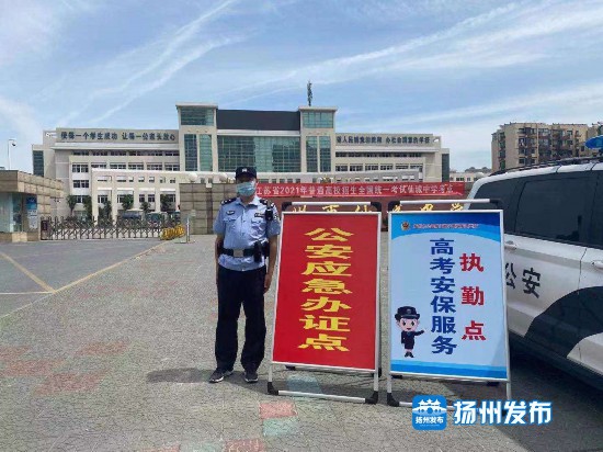 6月7日,高考第一天?紙鰞(nèi),考生專心答題;考場外,家長靜靜等候。揚州市公安局江都分局雙溝派出所副所長陳慶山也是眾多家長中的一員,不同的是,今天的他,剛好在兒子高考的考點仙城中學(xué)外執(zhí)勤。