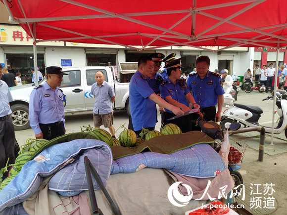 長(zhǎng)蘆街道綜合執(zhí)法大隊(duì)在農(nóng)貿(mào)市場(chǎng)開展專項(xiàng)整治。蘆萱攝