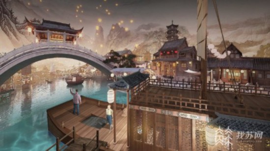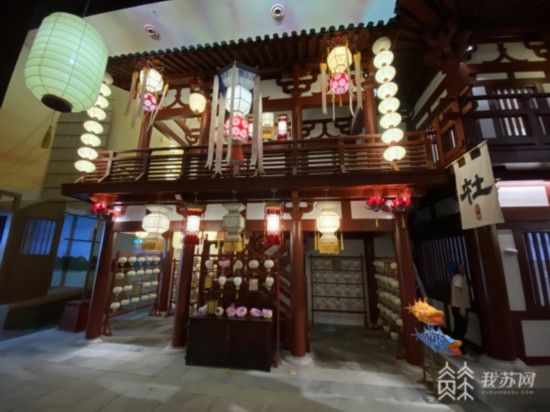 “仿佛是一個(gè)時(shí)間的穿越,我們可以感受到在明清時(shí)期江南水鄉(xiāng)的人家枕水而居。我們現(xiàn)在已經(jīng)進(jìn)入到運(yùn)河的夜晚了,有蟬鳴有蛙叫聲。在這個(gè)天幕中間它是一個(gè)循環(huán)播放的影片。在打雷下雨的時(shí)候,可以感受一下煙雨江南的生活!编嵕Ы榻B說(shuō)。