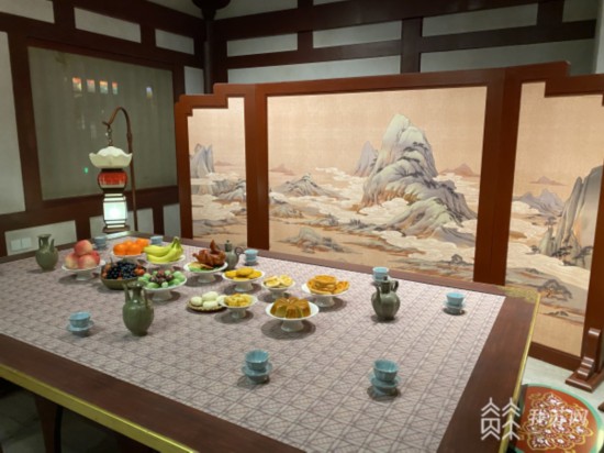鄭晶說(shuō),這一處的展館,則運(yùn)用更加多元的展示手段,其中,展館頂部用LED屏“吊頂”,配合聲光電技術(shù)的采用,展現(xiàn)運(yùn)河河畔日出到日落的景色。頂部屏幕播放下雨視頻,仿古建筑的屋檐也會(huì)同時(shí)“滴水”,讓觀(guān)賞游客身臨其境。
