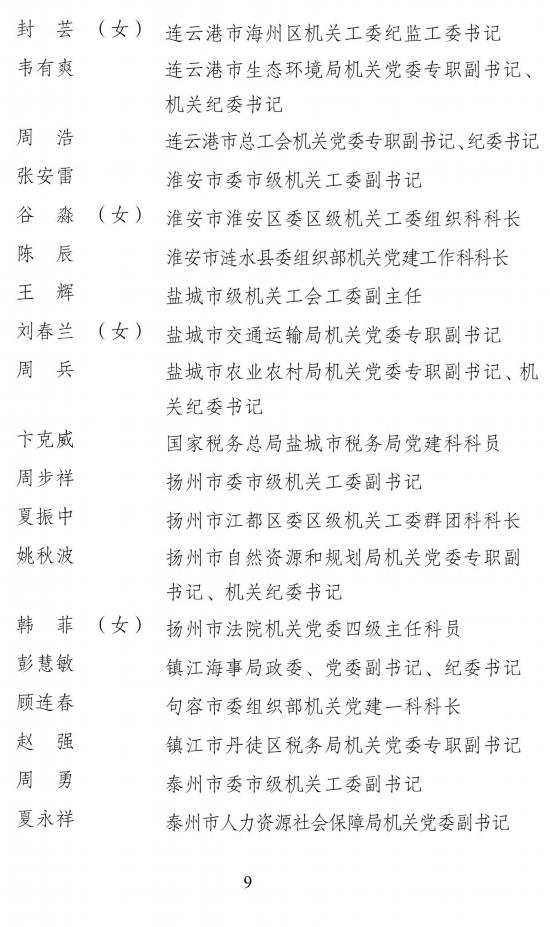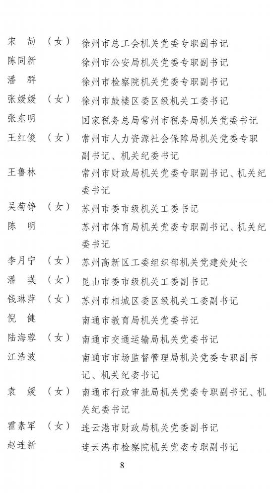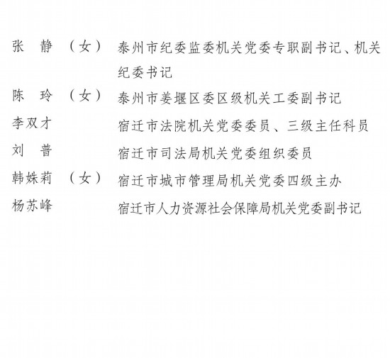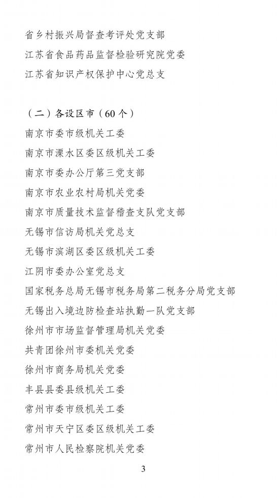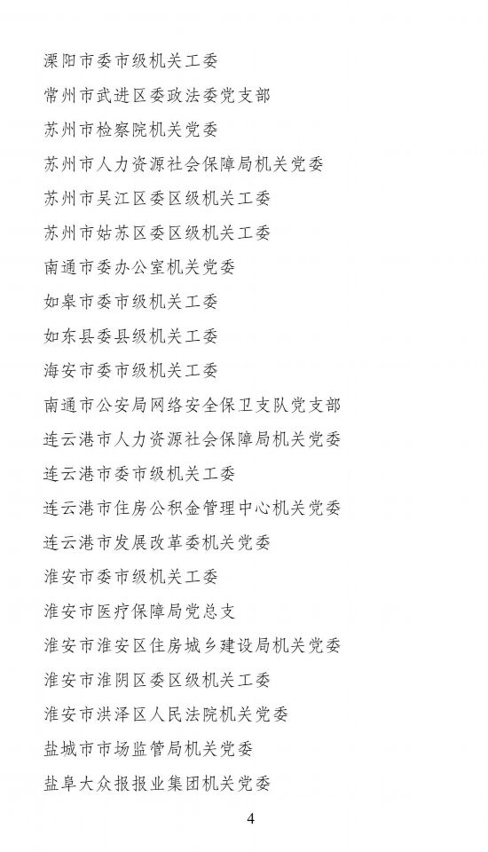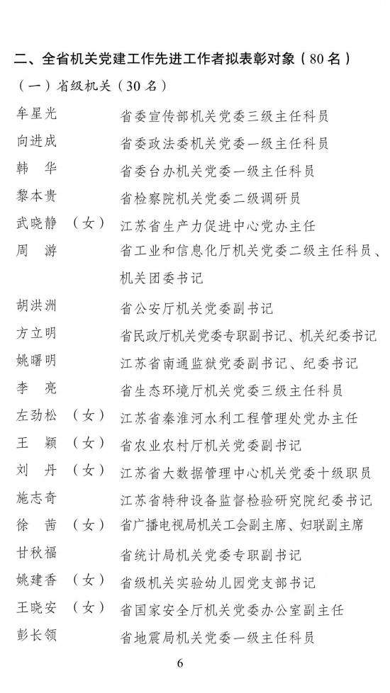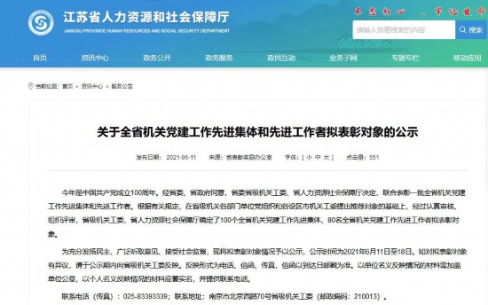 我蘇網(wǎng)訊近日,江蘇省人力資源和社會保障廳《關(guān)于全省機關(guān)黨建工作先進集體和先進工作者擬表彰對象的公示》,具體如下: