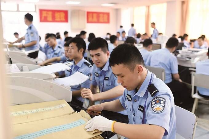 13日,全省28.9萬名考生的173萬張答題卡全部掃描完畢,通過專用光纜傳送閱卷點(diǎn)。圖為6月11日,工作人員在省教育考試院內(nèi)緊張有序地掃描答題卡。 楊素平 攝 (視覺江蘇網(wǎng)供圖)