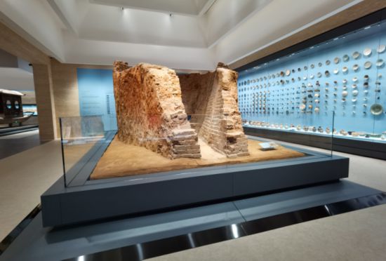 中國(guó)大運(yùn)河博物館中的巨型文物最為直觀地講述著運(yùn)河故事,其中,有從河南開封截取搬運(yùn)而來(lái)的大運(yùn)河河道剖面,涵蓋了唐代至清代不同時(shí)期的地層;有在鎮(zhèn)江市大運(yùn)河邊的大港鎮(zhèn)龍泉村發(fā)掘的一對(duì)唐代船形磚室墓;還有來(lái)自宜興市張渚鎮(zhèn)鳳凰村的一座南宋時(shí)期燒制磚瓦的“饅頭窯”。