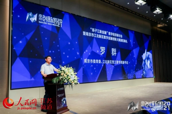 南京市委常委、江北新區(qū)黨工委專職副書記羅群致辭。主辦方供圖