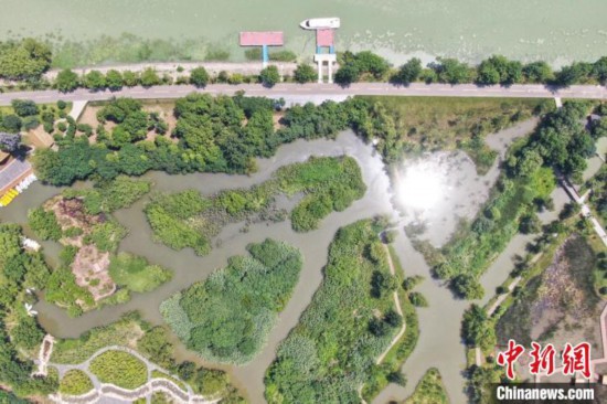 地處京杭大運河淮河入江水道和南水北調(diào)東線水域保護區(qū)的鳳凰島國家濕地公園。 泱波 攝