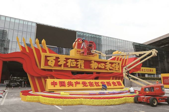 中國(guó)共產(chǎn)黨在江蘇歷史展將于7月1日正式對(duì)公眾開放。展覽以“百年征程、初心永恒”為主題,以中國(guó)共產(chǎn)黨在江蘇波瀾壯闊的奮斗歷程為主線, 通過(guò)2500余幅圖片、900多件(套)文物實(shí)物、3990多個(gè)展項(xiàng),第一次全方位、全過(guò)程、全景式、史詩(shī)般展現(xiàn)中國(guó)共產(chǎn)黨在江蘇100年的歷史,特別是黨的十八大以來(lái)全省干部群眾建設(shè)“強(qiáng)富美高”新江蘇的生動(dòng)實(shí)踐和巨大成就。圖為23日,工作人員在展覽現(xiàn)場(chǎng)加緊布展。本報(bào)記者 陳儼 攝