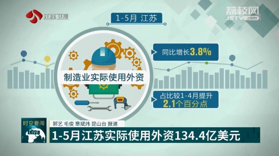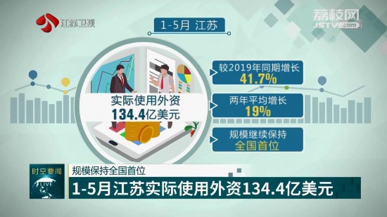 今年1-5月,江蘇實(shí)際使用外資134.4億美元,同比增長(zhǎng)45.6%,增幅高于全國(guó)5.8個(gè)百分點(diǎn);較2019年同期增長(zhǎng)41.7%,兩年平均增長(zhǎng)19%;規(guī)模繼續(xù)保持全國(guó)首位。