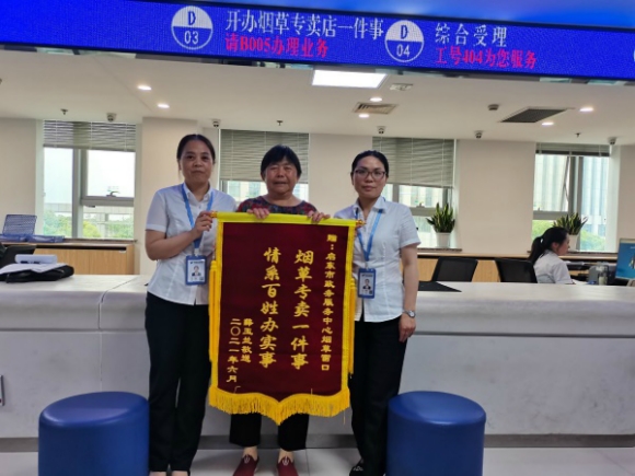 “真的是太感謝你們了!如果沒有你們的高效服務和耐心指導,我不知道要跑多少次。請你們一定要收下這面錦旗! ”近日,薛女士將一面寫有“煙草專賣一件事,情系百姓辦實事”的錦旗送到了南通啟東市煙草專賣局窗口工作人員手里,對窗口工作人員的貼心服務深表感謝。
