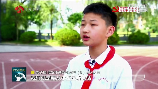 淮安市新安小學(xué)五(8)中隊隊員聞子翔說:“我們就是要從小堅定聽黨話、跟黨走的決心。傳承紅色基因,長大之后做祖國建設(shè)的棟梁之才!