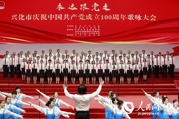 人民網(wǎng)泰州6月26日電(張玉峰)26日上午,江蘇省興化市新區(qū)體育館內(nèi)激情飛揚(yáng),紅歌嘹亮。由興化市委、市政府主辦的“永遠(yuǎn)跟黨走”——興化市慶祝中國(guó)共產(chǎn)黨成立100周年歌詠大會(huì)開唱。來(lái)自各行各業(yè)的20支合唱團(tuán)用滿懷激情的歌聲唱出對(duì)黨的忠誠(chéng)和摯愛,為黨送上最真摯的生日祝福。