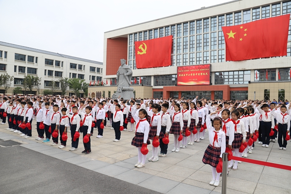 在主會場淮安市關(guān)天培小學(xué),面對黨旗,師生家長列為三個方陣,教師代表、學(xué)生代表、家長代表在特殊的升旗儀式上舉行千名教師“為黨育人、為國育才”、千名家長“科學(xué)育兒、助力成長” 、千名學(xué)生“立志成長成才,爭做新時代小好漢”為主題的集中宣誓活動,引導(dǎo)廣大教師踐行教育初心、牢記育人使命,激發(fā)家長共擔(dān)育人責(zé)任,鼓舞全區(qū)中小學(xué)生自覺成長成才。